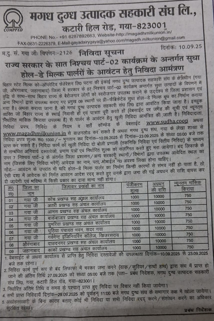 मगध दुग्ध संघ गया , में छात्र ऐवं छात्राओं को शैक्षणिक परिभ्रमण 12.02.2025 को किया गया जिसमे छात्रों को पशुधन के साथ विज्ञान का समागम की जानकारी मगध दुग्ध के प्रबंध निदेशक ज्ञान शंकर जी के द्वारा दी गई।